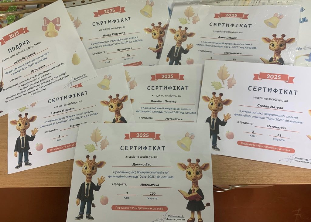 НАШІ РОЗУМНИКИ!!! Учні 3 класу Керницького НВК взяли участь у Всеукраїнській олімпіаді з математики «Осінь-2025» від JustClass